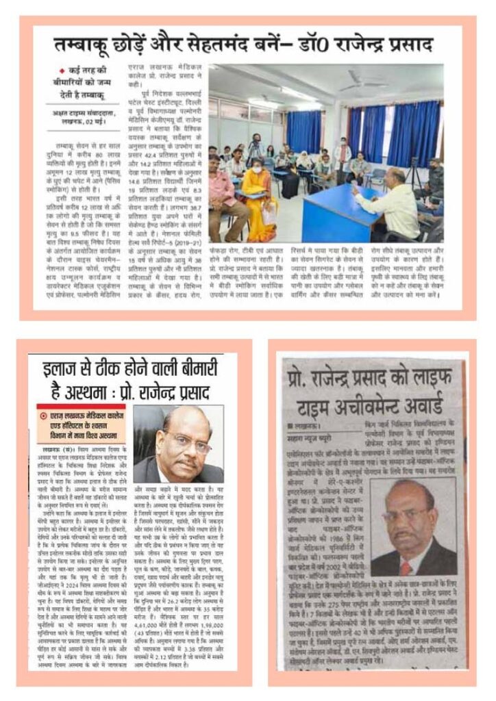 Dr. Rajendra Prasad’s impactful work has been widely covered in national dailies, journals, and television.He frequently appears in public health awareness campaigns, conferences, and documentaries.